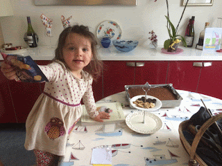 Harriet, now nearly 2 years old is helping prepare Grandpa's birthday cake. I used my mother's Chocolate Cake recipe in which she has written on the top of the recipe card "from Eastern Star book".